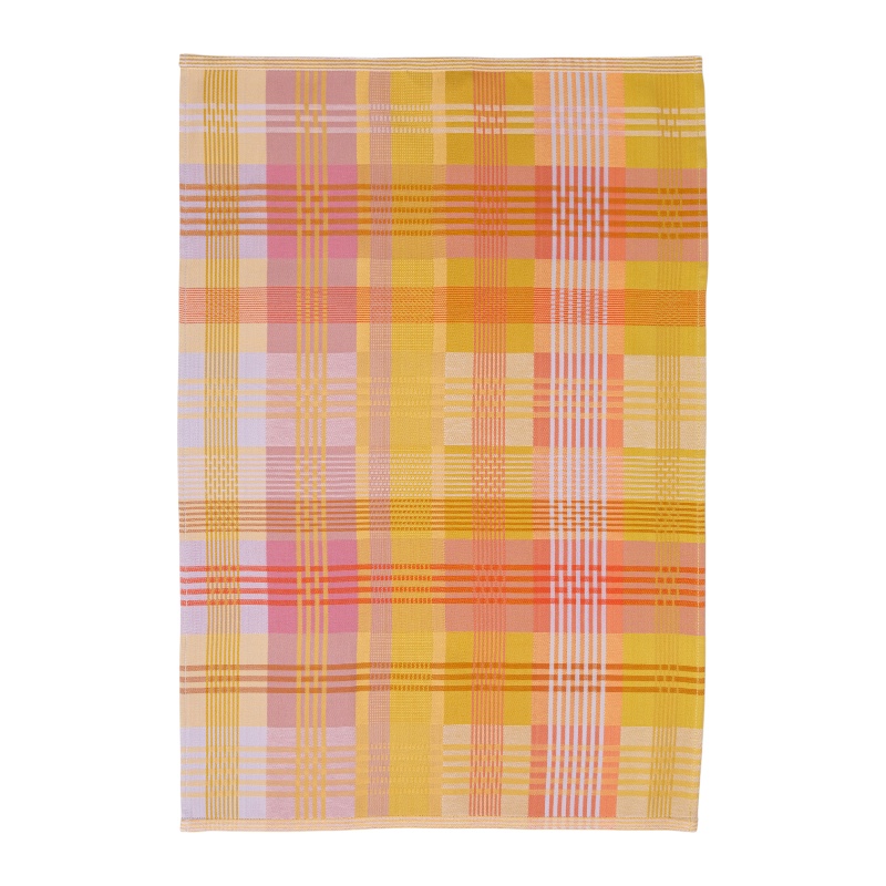 Theedoek uit de serie Wild Weave van 100% katoen, veelkleurig 50×70 cm en gemaakt van garenresten. Geblokt in heldere kleuren.