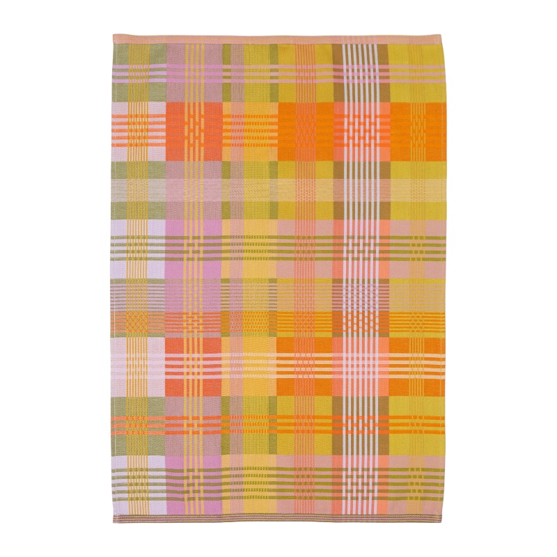 Theedoek uit de serie Wild Weave van 100% katoen, veelkleurig 50×70 cm en gemaakt van garenresten. Geblokt in heldere kleuren.