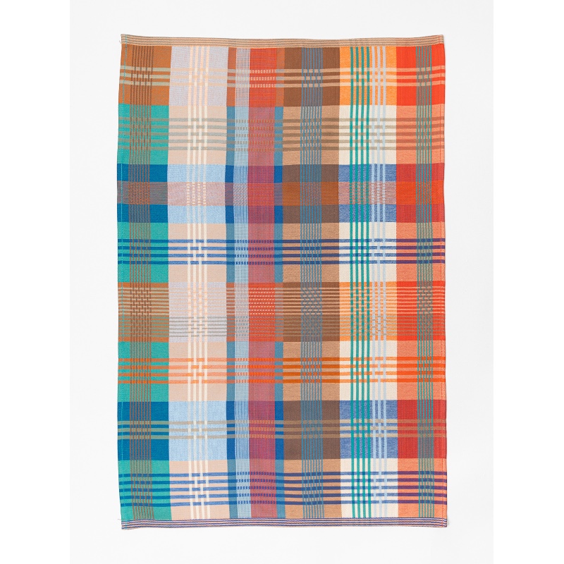 Theedoek uit de serie Wild Weave van 100% katoen, veelkleurig 50×70 cm en gemaakt van garenresten. Geblokt in heldere kleuren.