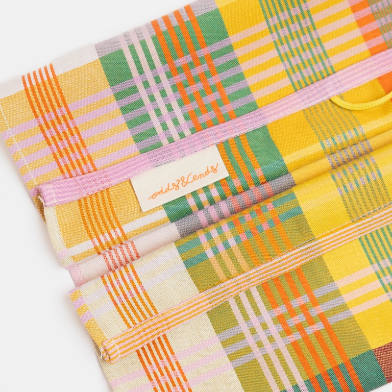 Foekje Fleur, Odds & Ends theedoek is onderdeel van de nieuwe keukentextiel collectie. Vanaf het najaar 2023 is Foekje Fleur een nieuwe collectie keukentextiel begonnen. Wanneer fabrieken garens verven om textiel te weven, maken ze er wat extra – voor het geval dat – maar die blijven vaak ongebruikt. Het Odds & Ends textiel is ontworpen om het maximale uit deze restanten te halen, waardoor eindeloze onverwachte kleurencombinaties ontstaan! De collectie textiel van Foekje Fleur heeft een wisselende samenstelling - kunnen zomaar collector items worden!