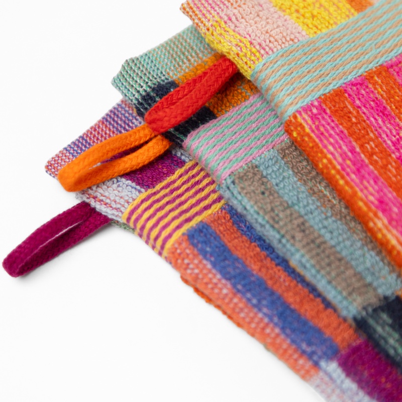 Trio van 3 verschillende vrolijke washandjes in verschillende kleurstellingen met de tulpenvelden als inspiratie. Afmeting 15×21 cm.