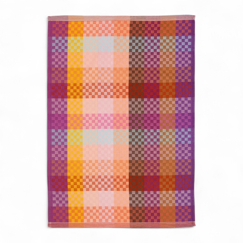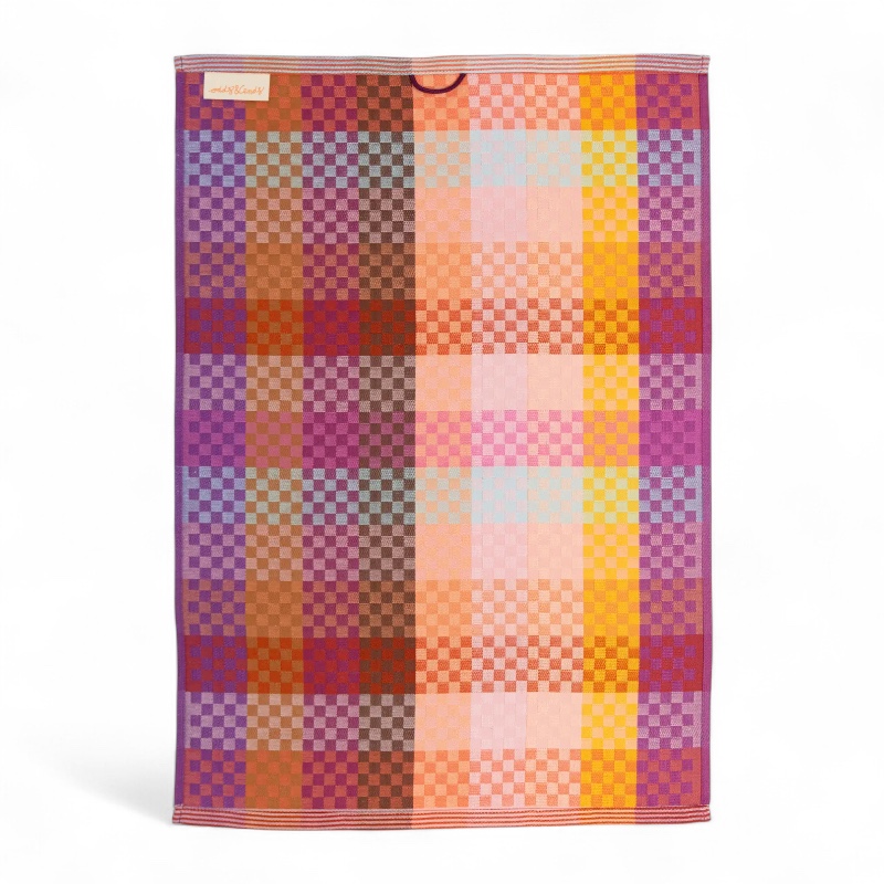 Theedoek uit de serie Checkerd Check van 100% katoen, veelkleurig 50×70 cm en gemaakt van garenresten. Geblokt in heldere kleuren.