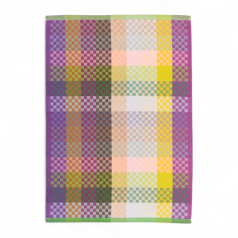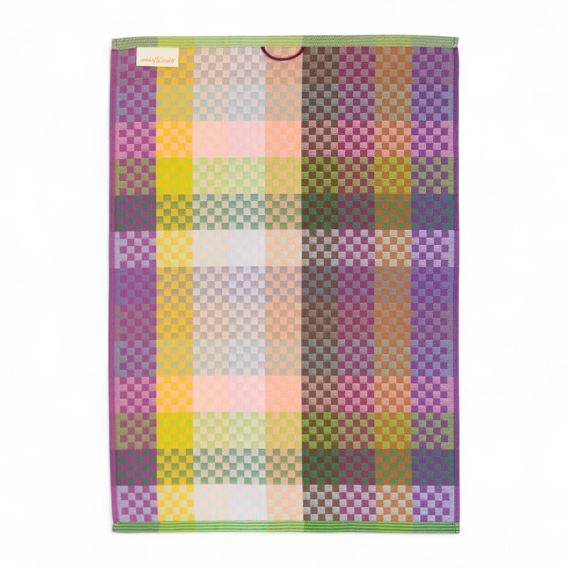 Theedoek uit de serie Checkerd Check van 100% katoen, veelkleurig 50×70 cm en gemaakt van garenresten. Geblokt in heldere kleuren.