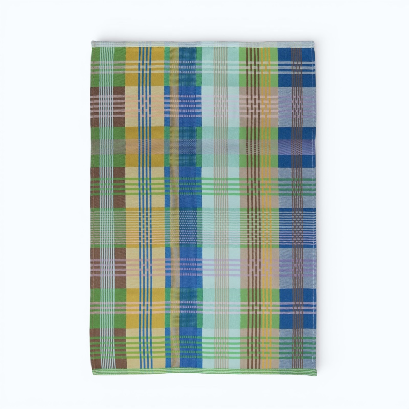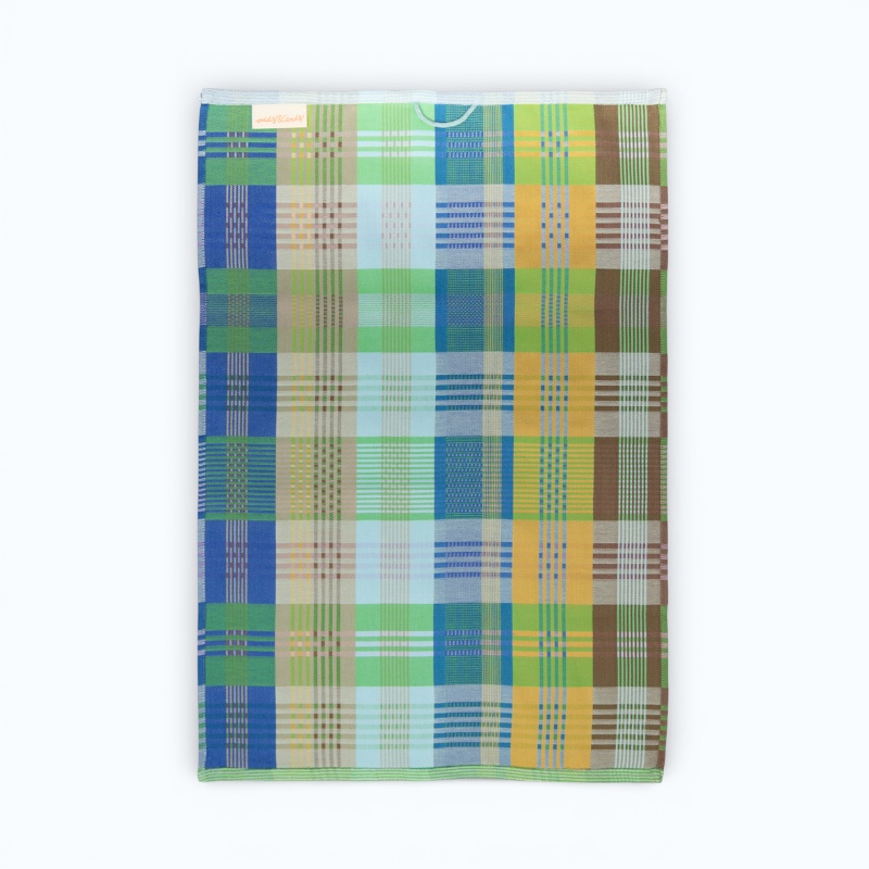 Theedoek uit de serie Wild Weave van 100% katoen, veelkleurig 50×70 cm en gemaakt van garenresten. Geblokt in heldere kleuren.