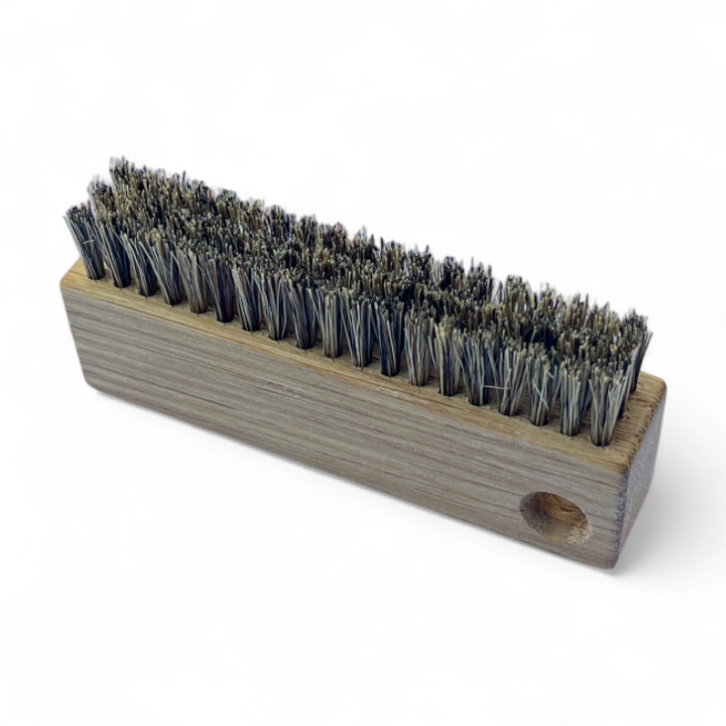 De eventueel onbehandelde houten delen kun je beschermen door om de 6 maanden een dun laagje lijnolie op het hout aan te brengen. Ophangen om te drogen. Om de borstel zelf te reinigen, zet deze dan een nachtje in een oplossing van lauwwarm water met een scheut natuurazijn.