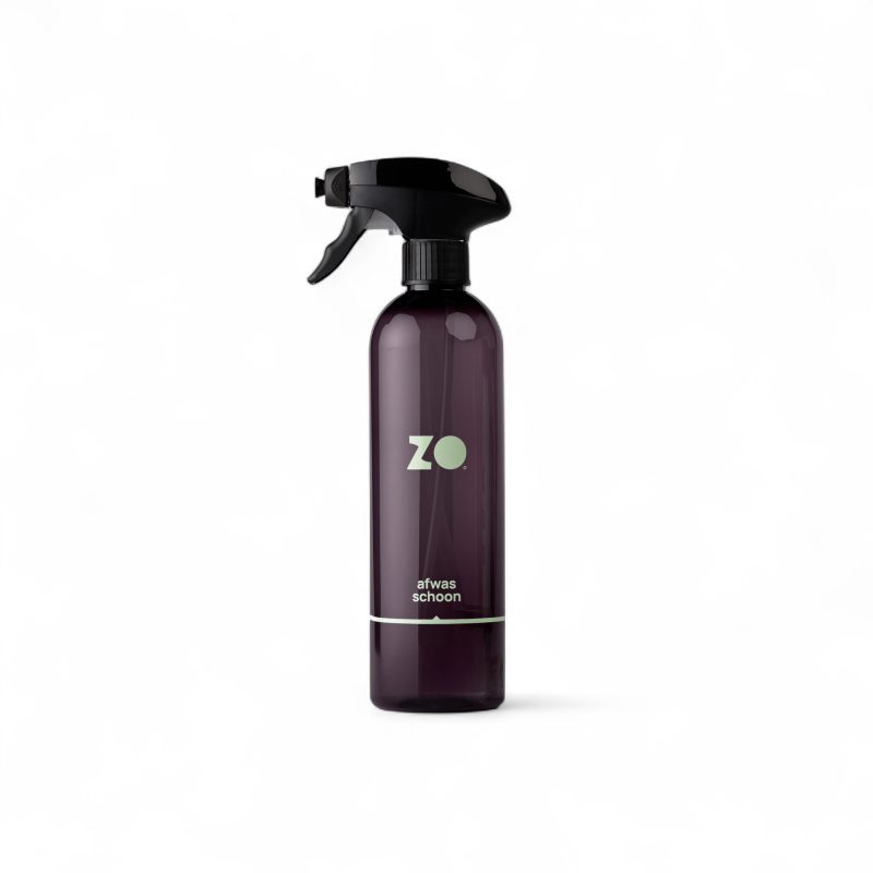 ZO afwas schoon zit in een ZO forever bottle (foamer) met levenslange garantie. De lege navulzakken worden na retour gerecycled. Glas is niet veilig in huis, vooral niet als er kleine kinderen zijn. Daarom zijn de sprayers gemaakt van PET. Dat gaat net zo lang mee als glas, is onbreekbaar en weggooien is niet nodig. De foamkop is gemaakt van PP en een deel uit PE: polyfine materialen en dus volledig recyclebaar.